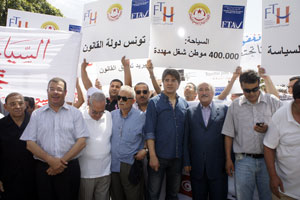 Les opérateurs du tourisme tunisiens sont descendus dans la rue samedi 16 juin 2012 pour dénoncer les derniers événements sécuritaires ayant mis en péril la saison touristique. La manifestation s’est déroulée entre les ministères du Tourisme et celui de l’Intérieur à Tunis avec de se déplacer au siège de l’ANC au Bardo.