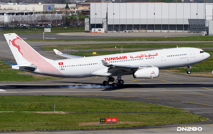 Fraîchement paré aux couleurs de la compagnie nationale et de la Tunisie à sa sortie des ateliers de peinture de l’aéroport Châteauroux Centre, le premier A.330 de Tunisair révèle son nom de baptême, « Tunis » et affiche une nouveauté pour la flotte de la compagnie en revêtant également le logo de Tunisair au bas de son fuselage.