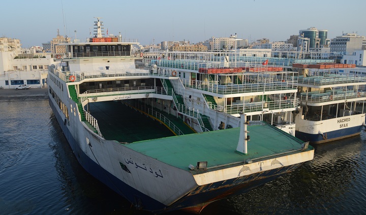 Les Louds amarrés dans le port de Sfax. « Loud Tunisie » peut accueillir 600 passagers et 120 véhicules. Il est entré en exploitation en 2006. « Hached » date de 1996. Il peut transporter 900 passagers et 67 véhicules.