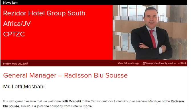 Après Djerba (2 unités) et Hammamet (1 unité), le groupe hôtelier Carlson Rezidor (1440 établissements dans 115 pays), qui compte dans son giron notamment la marque Radisson Blu, se prépare à ouvrir deux nouveaux hôtels à Sousse en partenariat avec l’hôtelier Moez Driss dans le cadre d’un contrat de gestion pour compte.