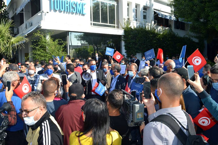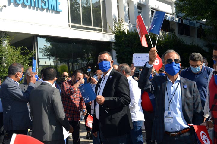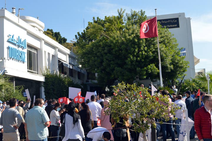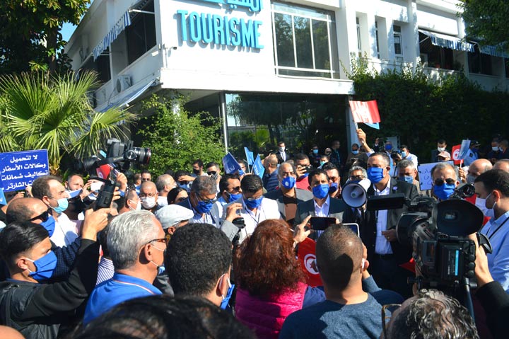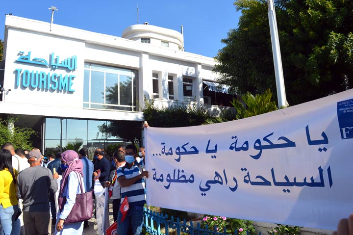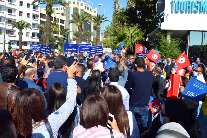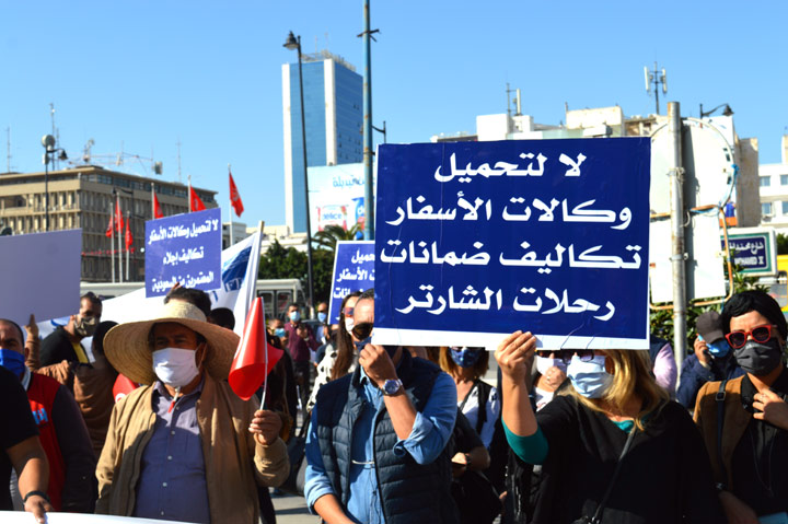 Face à l’inertie du gouvernement et à la non-application des mesures de soutien promises depuis des mois, les agences de voyage, chapeautées par la FTAV (Fédération tunisienne des agences de voyages), ont manifesté devant le siège du ministère du Tourisme.