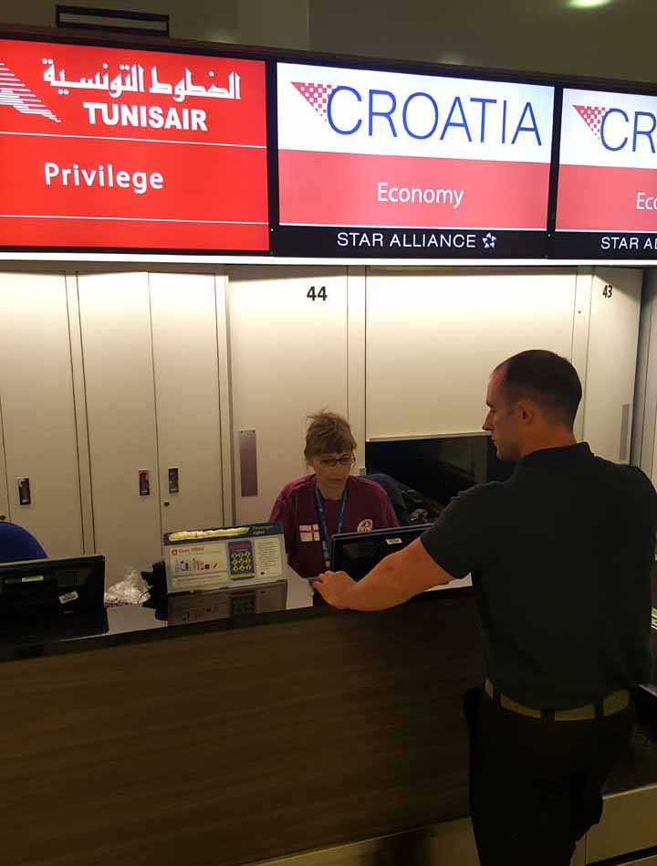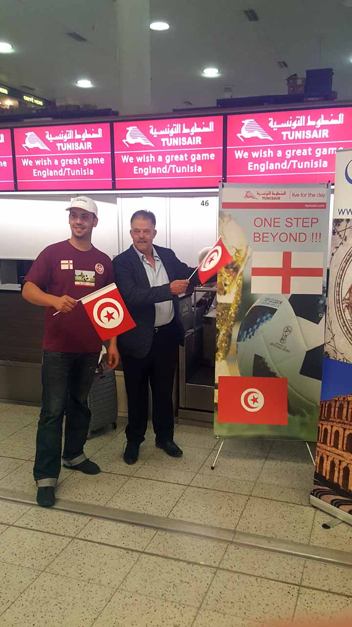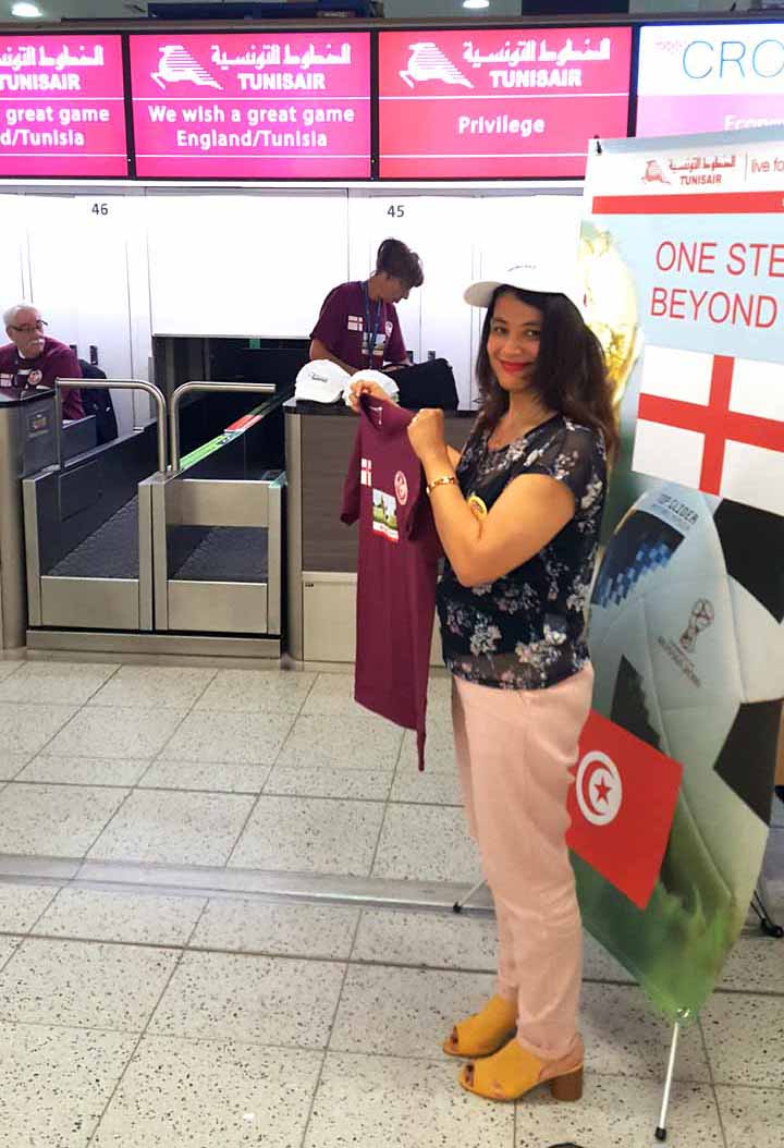 Une action conjointe réalisée par Tunisair et l’ONTT Londres a été mise en place au niveau de l’enregistrement avec des maillots arborant l’écusson des deux pays offerts aux passagers et que même les agents de comptoir ont porté pour se fondre dans l’ambiance, en plus d’une décoration spécifique de l’espace et la distribution de drapeaux de la Tunisie.