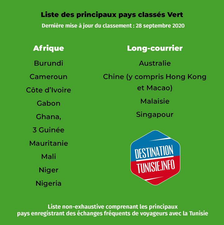 Je viens d’un pays classé VERT, quelles sont les conditions pour entrer en Tunisie ?