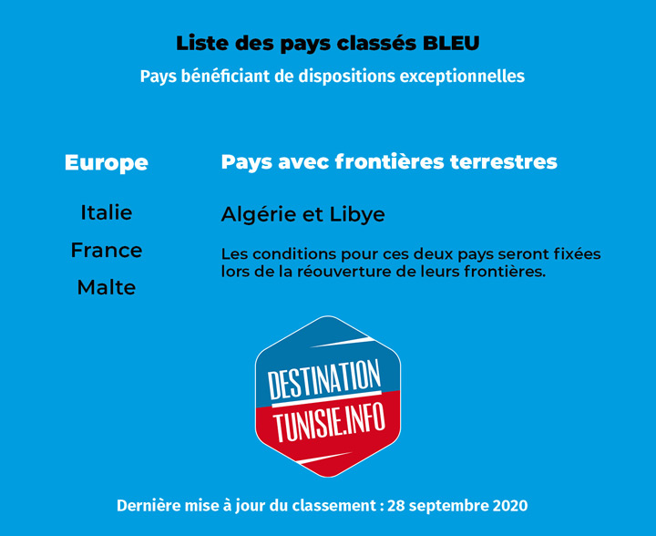 La Tunisie met en place de nouvelles conditions d’accès à son territoire qui entrent en vigueur à compter du 28 septembre 2020. Celles-ci sont dictées par les nouvelles considérations sanitaires consécutives au Covid-19 dans le monde. FAQ.