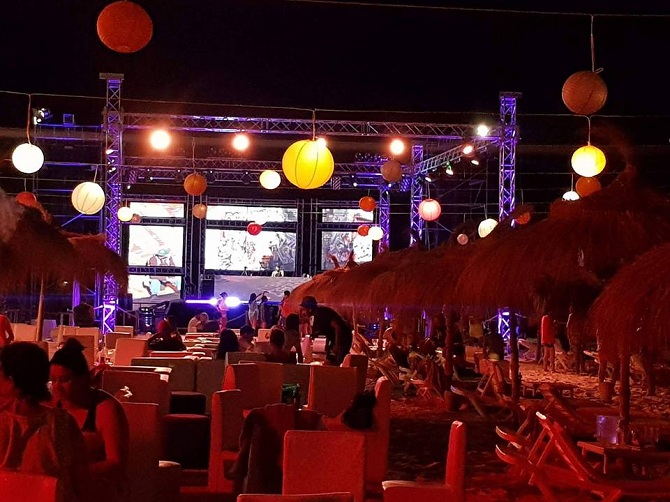 La Beach Party est en effet un événement musical et festif organisé cet été en partenariat avec Buddha-Bar Paris à l’occasion de ses 20 ans. La plage de l’hôtel a en effet été totalement réaménagée en une discothèque géante avec une capacité de 820 places assises et 500 places debout. Au total, 2500 personnes ont pris part à ce qui peut s’apparenter à un festival musical et gastronomique.