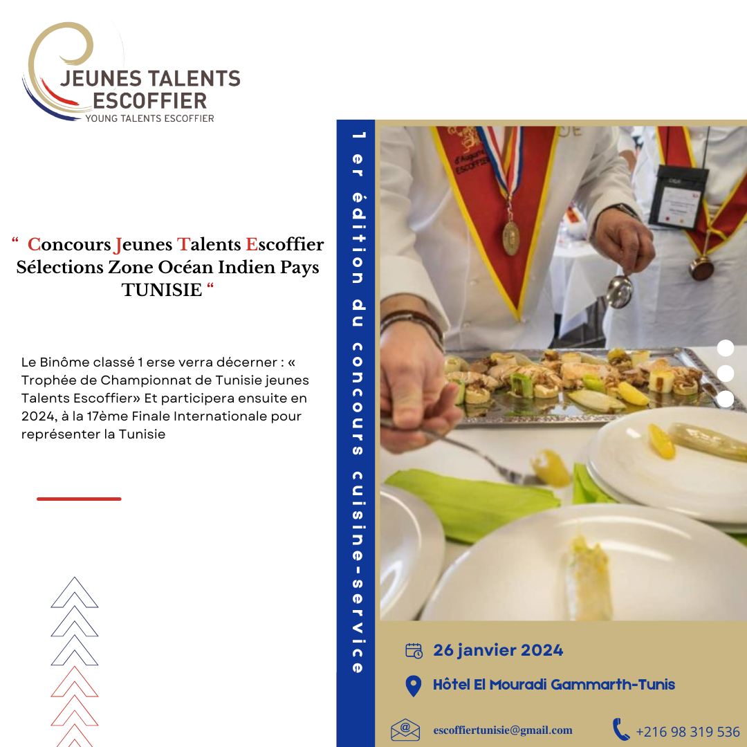 Il y aura aussi le Concours des Jeunes Talents Escoffier, ce rendez-vous incontournable de la gastronomie internationale. Le Concours promet d’être une occasion exceptionnelle de célébrer la cuisine française ainsi que la cuisine tunisienne et de faire rayonner ces deux cultures culinaires riches et authentiques.