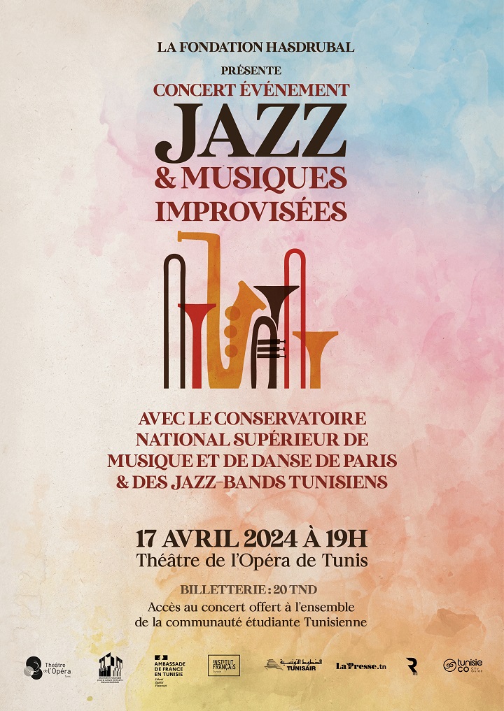 « Ces 2 concerts inédits inviteront le public à effectuer un véritable voyage intercontinental autour du Jazz et de la découverte de la magie créative de l’improvisation. Les musiques improvisées seront donc à l’honneur au cours de ces 2 concerts avec en 1ère partie des Jazz-bands tunisiens avant l’entrée en scène des musiciens du Conservatoire National Supérieur de Musique et de Danse de Paris » a déclaré Laurent Jost, avant d’ajouter: « La Cité de la Culture de Tunis accueillera donc au sein de ses infrastructures l’un de ces 2 Concerts, et ce, dans le cadre de la Convention de partenariat unissant le Théâtre de l’Opéra de Tunis et la Fondation Hasdrubal ».
