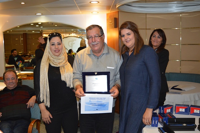 La compagnie maritime italienne Grimaldi Lines a récompensé ses meilleurs vendeurs sur la Tunisie. Au cours d’une cérémonie organisée à bord de son navire Zeus Palace, les agences de voyages ayant réalisé les meilleures résulats commerciaux se sont vu attribuer un prix et des cadeaux.