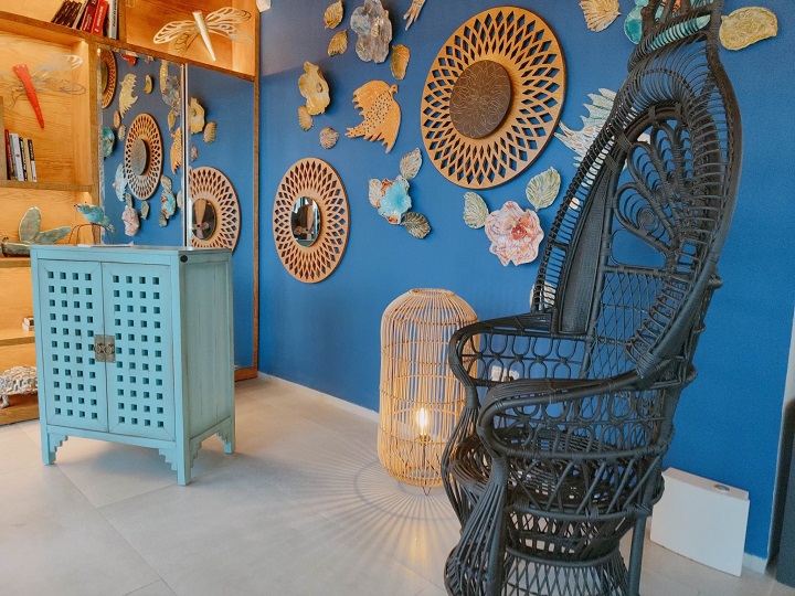 Chacune des pièces de céramique qu’elle a par ailleurs sélectionnées et qui ornent certains pans de murs s’apparentent à des œuvres d’art qui ajoutent une dimension artistique exceptionnelle aux lieux.