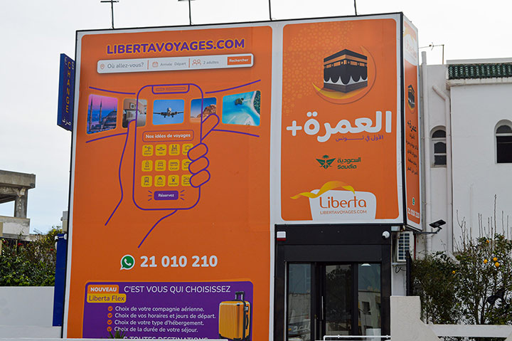 Implanté à un carrefour stratégique de la zone, cette agence offre toute la palette de produits et services: outre la Omra, qui constitue le produit fer de lance de Liberta qui est devenue leader du marché sur ce segment ces dernières années, des offres de voyages outgoing mais aussi de billetterie aérienne sont proposées.