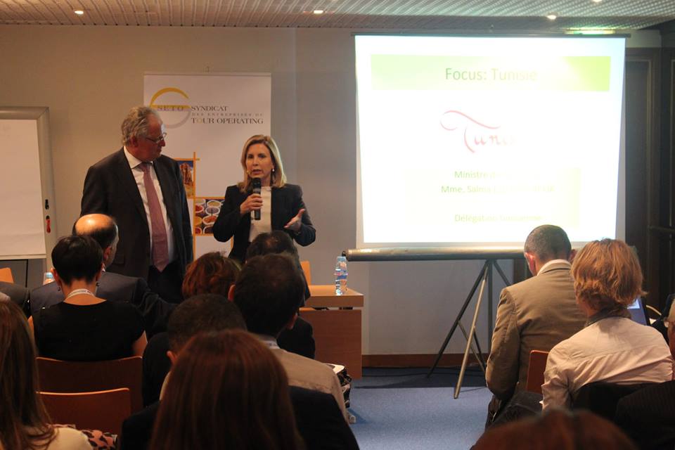 Dans une salle archi-comble, l’intervention de la ministre du Tourisme Selma Elloumi-Rekik était très attendue par les journalistes sur place. En présence des membres du Seto (dont Pascal Izaguirre, président directeur général de TUI France), la ministre a jugé nécessaire de rappeler à cette assistance de professionnels aguerris que « la Tunisie est un pays riche de 3000 ans d’histoire ». On ne sait pas si le scoop a plu aux présents, mais cela n’a pas empêché Mme Elloumi-Rekik d’enchaîner sur les os de dinosaures retrouvés à Tataouine ainsi que sur l’ancien fort dans lequel étaient emprisonnés les officiers déserteurs de l’armée française qu’il fallait visiter.