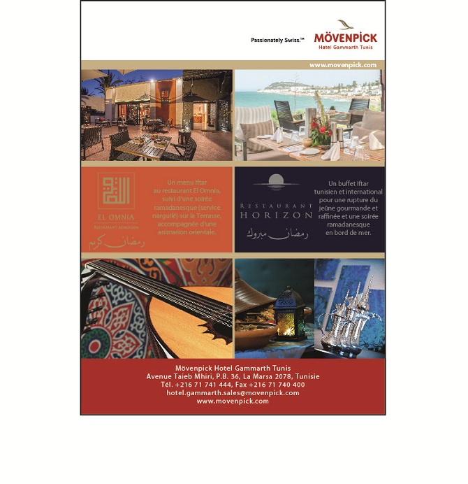 L’hôtel Mövenpick à Gammarth célèbre le Mois Saint. Durant les 30 jours de Ramadan, ses deux restaurants, Horizon et El Omnia, proposent une cuisine raffinée et typique.
