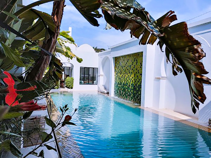 Dans la grande salle qui fait également office de réception, une magnifique collection de pièces de céramique est jalousement conservée. Elles sont l’œuvre de l’aïeule de la famille. La maison baigne dans un univers de verdure enchanteur. Et durant la belle saison, une grande piscine accueille les clients à la recherche de fraîcheur et de volupté.
