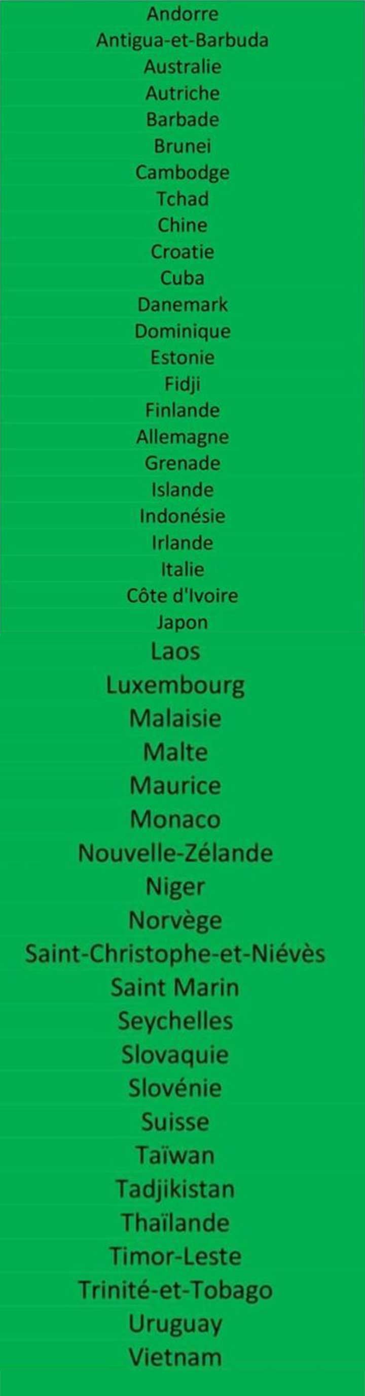 Les pays ne figurant pas dans les listes ci-dessus sont considérés comme ROUGE.