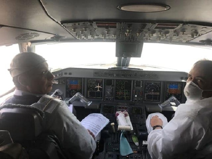 A bord du dernier vol de rapatriement Madrid-Tunis de Jasmin Airways, respect des consignes sanitaires extrêmes que ce soit dans la cabine passagers que dans le cockpit.