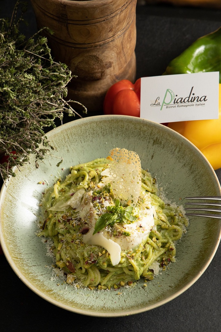 En plus de la Piadina comme met principal, on pourra également se voir proposer une longue liste de salades (4), 8 sortes de pizzas, mais également 11 plats de pâtes en tout genre, pour un voyage culinaire en Italie. Tous ces mets, qui constituent la carte, auront en commun l’usage de produits frais et de qualité.