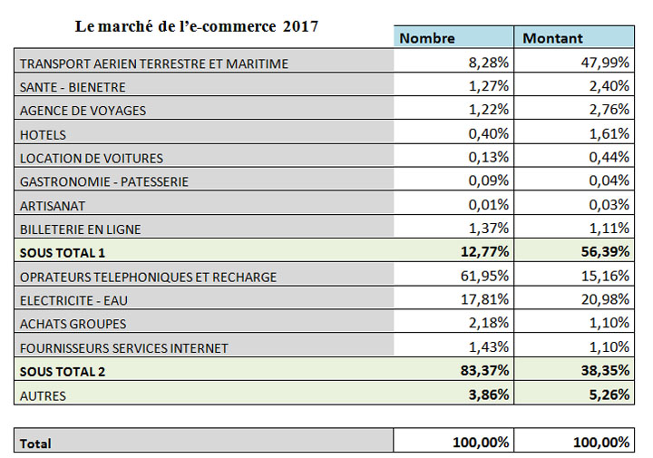Mais le chiffre ne reflète pas vraiment la valeur réelle des opérations réalisées en ligne dans le secteur du tourisme, tous services confondus, puisqu’en fait, l’e-tourisme représentait 56,39% du montant total des transactions effectuées en ligne en 2017.