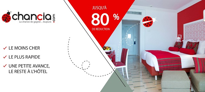 www.chancia.com. Il s’agit d’un site permettant la réservation d’hôtels en Tunisie en ne payant qu’une petite avance par carte bancaire, le solde étant réglé à l’arrivée du client à l’hôtel.