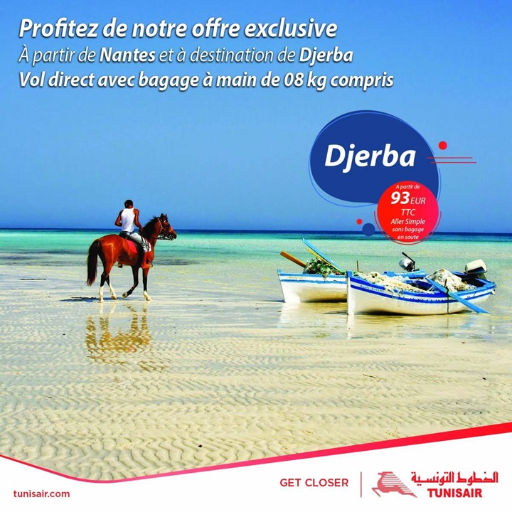 La nouvelle ligne Djerba-Nantes opérée par Tunisair est entrée en activité. La compagnie lance une offre spéciale à ses passagers.