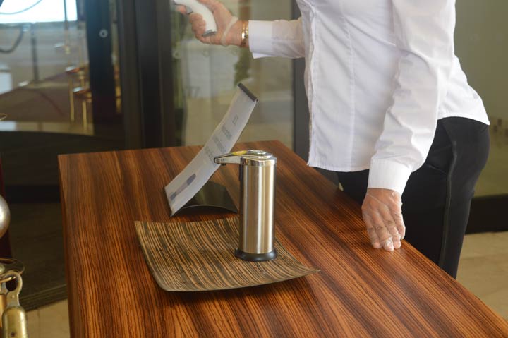 Le port du masque est obligatoire à l’entrée de l’hôtel et au niveau des espaces communs. Les clients de l’hôtel doivent aussi passer par le tunnel de désinfection avant d’accéder à la réception. Des bavettes jetables sont offertes par la suite aux personnes ne portant pas de masques. Contrôlé par Cristal International Standards, le protocole mis en application par l’hôtel La Cigale est beaucoup plus détaillé et plus exigeant par rapport au Protocole de santé de l’ONTT. Le personnel n’oublie aucun détail. Même les stylos utilisés pour les signatures lors du check-in ne sont utilisés que par une seule personne.
