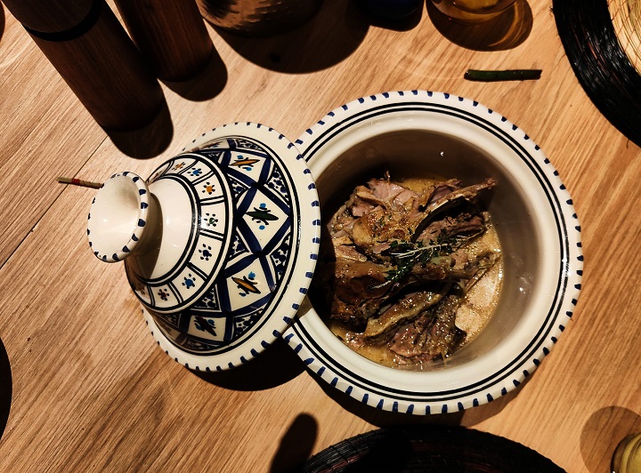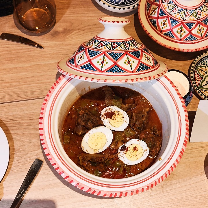 Mais ce sont surtout les plats typiques de la cuisine tunisienne qui sont proposés sous deux thématiques : « Saveurs de la Médina » avec, tous les jours, une spécialité (kaftégi bel Kebda, Tajine el bey, Ojja au Kadid…) ainsi que des plats « Ayem Zmen » , autrement dit inspiré du bon vieux temps et du patrimoine culinaire authentique de la Tunisie (Nwasser, agneau cuit à l’étouffée, couscous au poisson, Aïn Spagnoria, Djej Malfouf…).