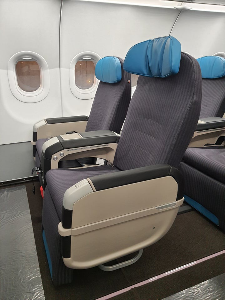 Pour les passagers voyageant à bord de cet appareil, le nombre de sièges a été réduit à 150 au lieu de 162 sur les configurations précédentes de l’A.320. En réalité, c’est au niveau de la classe Affaires que les sièges ont été diminués: Tunisair a fait le choix de supprimer le siège du milieu. Désormais, il n’y aura plus que deux sièges côte à côte en Business avec une cabine fixe pouvant accueillir 12 voyageurs, soit « une des classes Affaires les plus confortables de toute la Méditerranée » soutient de son côté la compagnie. Pour la différencier encore plus, le choix a été fait de la doter de têtières bleu canard.