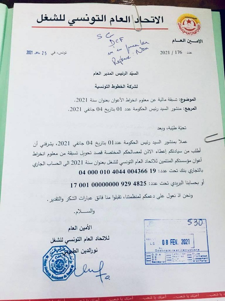 2e péché capital : étaler sur la place publique une correspondance supposée demeurer interne avec le tout-puissant syndicat UGTT concernant les cotisations des membres de ce syndicat et la dénoncer alors que celle-ci est parfaitement en conformité avec les usages. Plus encore, défier le secrétaire général de la centrale en le qualifiant de « l’homme qu’il ne faut pas à la place qu’il faut ».