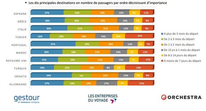 Quant à la tendance des délais de réservation vers les destinations moyen-courrier, la Tunisie est classée au 4ème rang parmi les dix principales destinations en nombre de passagers.