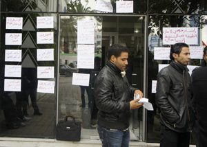 Une trentaine d’étudiants diplômés en animation touristique issus de plusieurs écoles en Tunisie organisaient aujourd’hui un sit-in à l’entrée du ministère du Tourisme. Les étudiants réclamaient leur embauche soit au sein de l’administration, soit dans les hôtels «mais à la condition que l’on ne nous fasse pas travailler deux mois dans notre secteur et le reste de l’année à faire les serveurs» s’est insurgée une jeune diplômée. Ces étudiants avaient également collé un certain nombre de tracts contenant leurs revendications sur la porte d’accès au ministère. D’autres avaient même installé des matelas à même le sol dans le but de camper sur place.